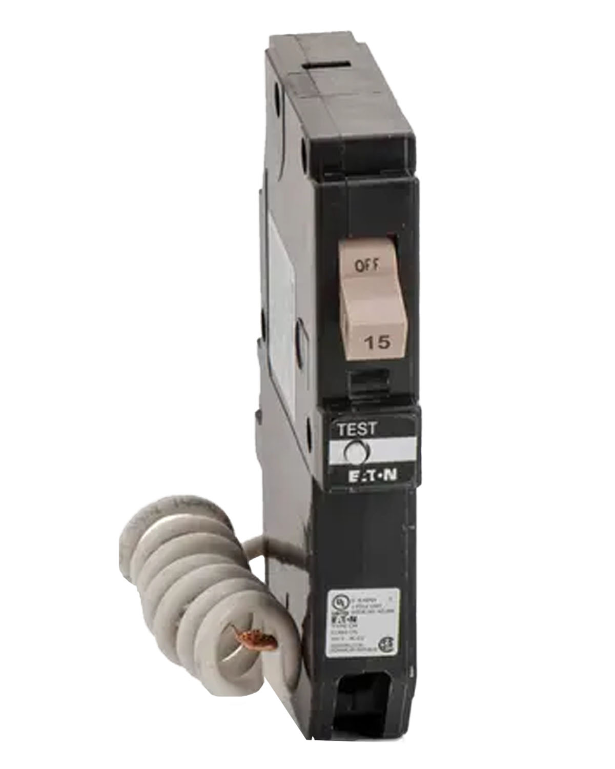 Eaton Cutler-Hammer Cutler-Hammer15GF 2-pole 15 A ground-fault circuit interrupter breaker for CH panels, provides 5 mA personnel protection.