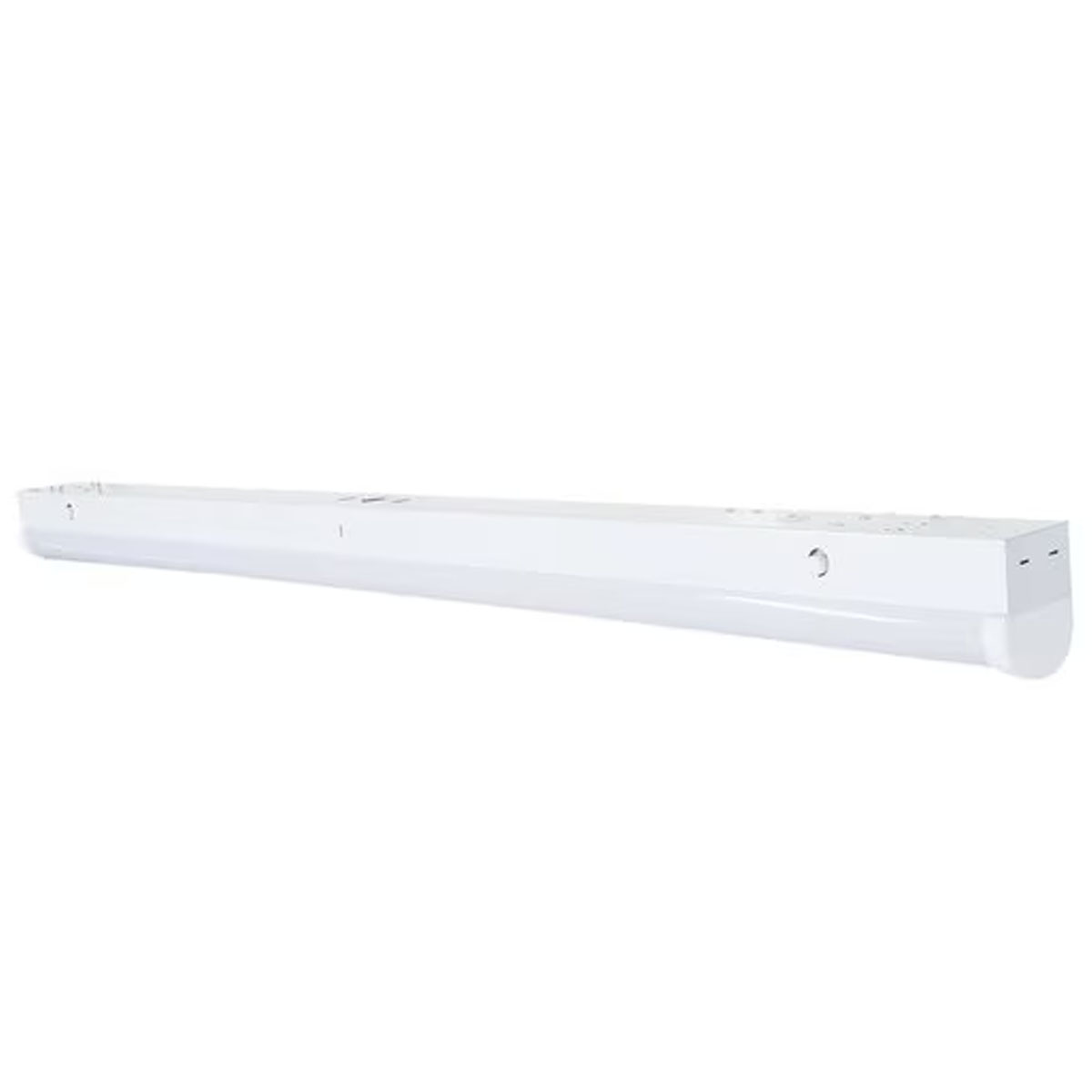 Satco 65/702 8 foot LED strip with selectable 30/40/50 Watt output and 3500/4000/5000K CCT, 120-277 Volt, designed for retrofits in shops, warehouses, and utility aisles.